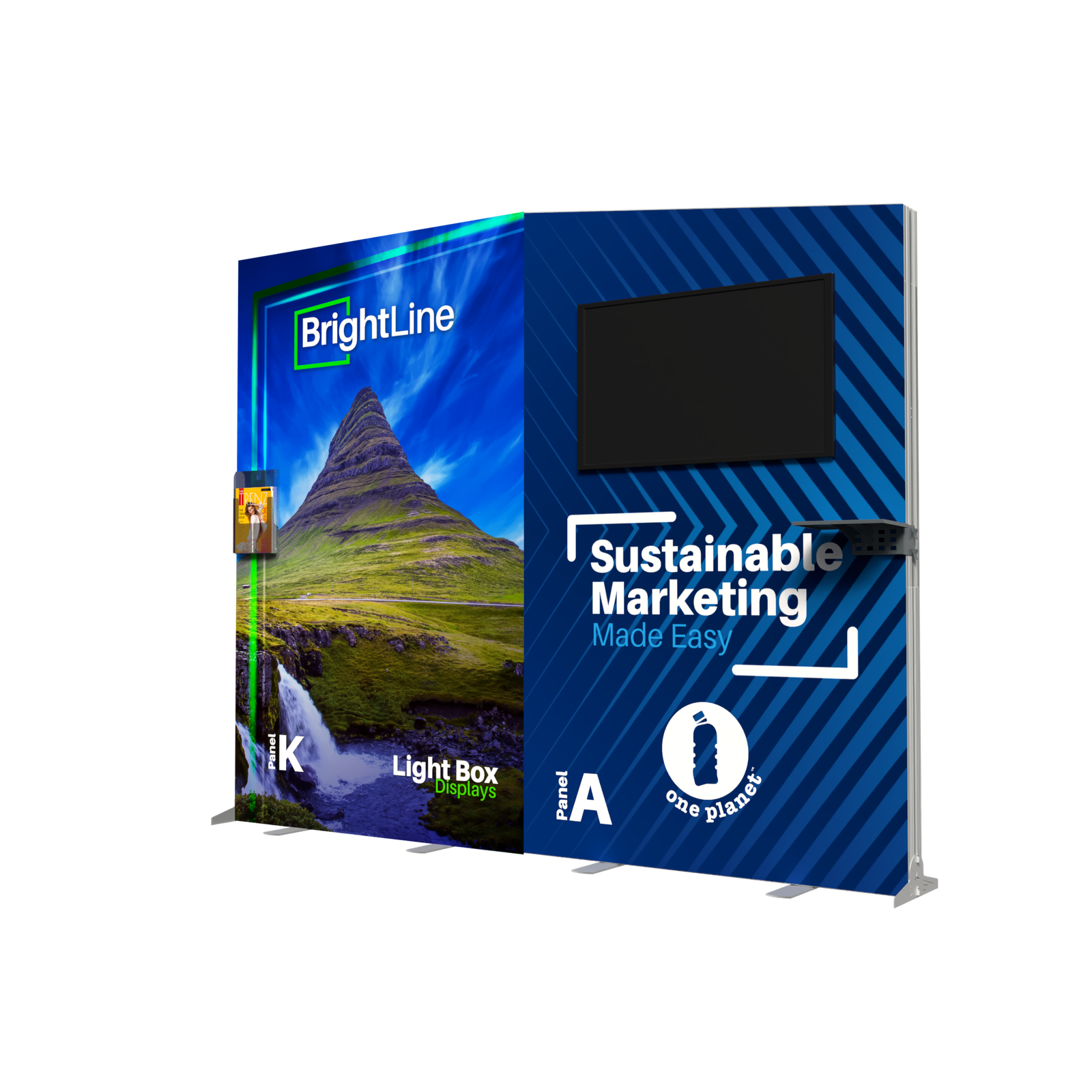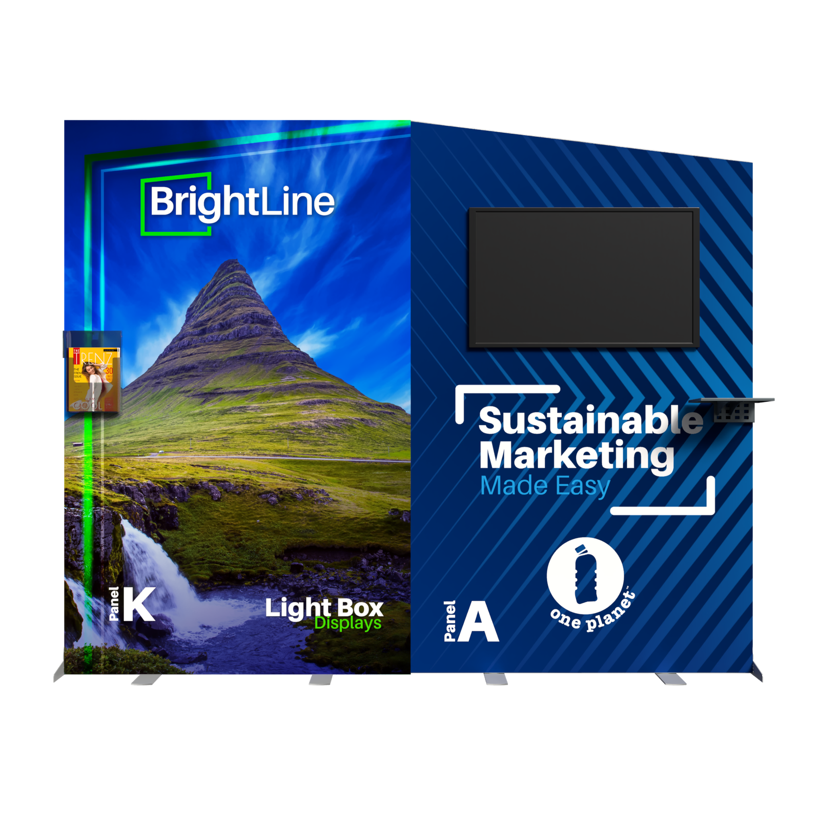 BrightLine Kits engage audiences with illuminated displays combining shapes and styles to create captivating exhibits. Kits include hardware, graphics, connectors, and extension cables to reach a single power source location. Each panel is packed in a custom-foamed shipping case. The 10-KA kit includes the exclusive angled design of Panel A, to enhance the brilliant allure of backlit exhibits to new heights. Elevate the branding experience with double-sided graphics, or adding accessories like