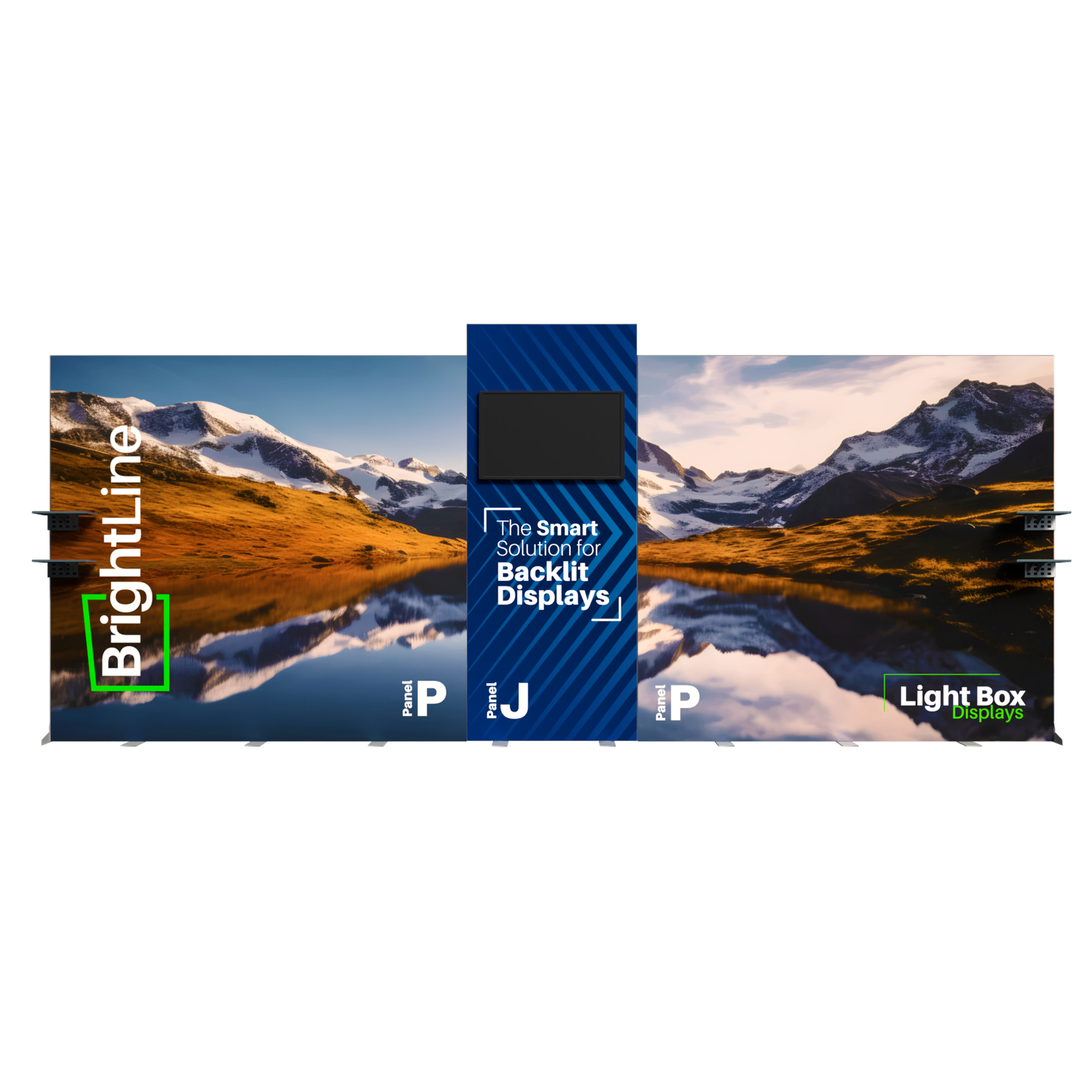 TV mounts, counters, and shelving. Panels can also be replaced with matching options from WaveLine and StraightLine display systems, contact our team for details.