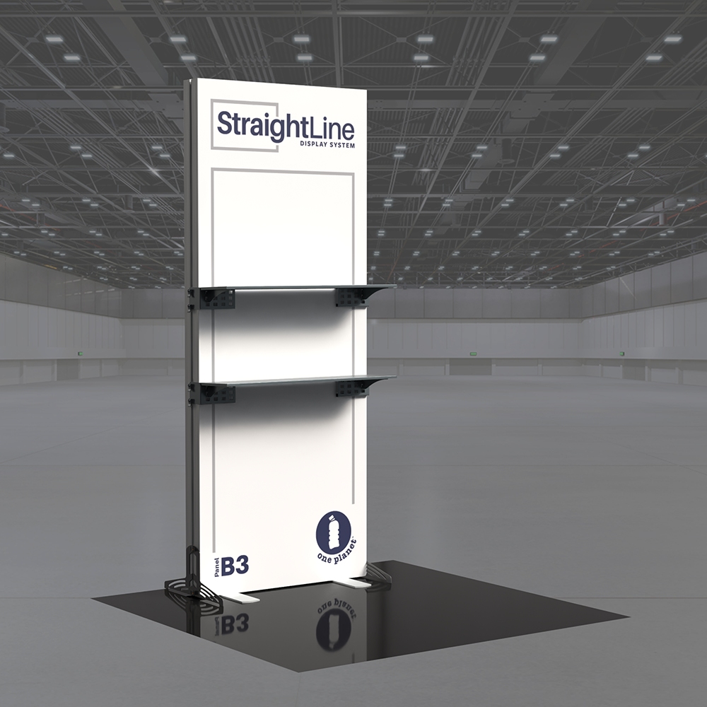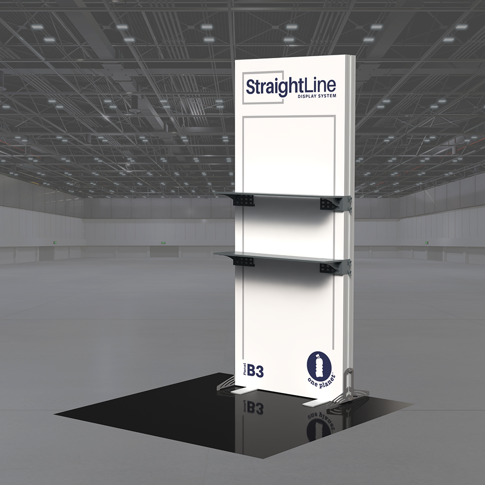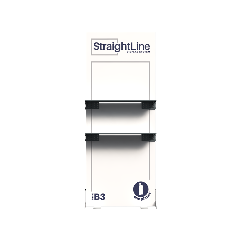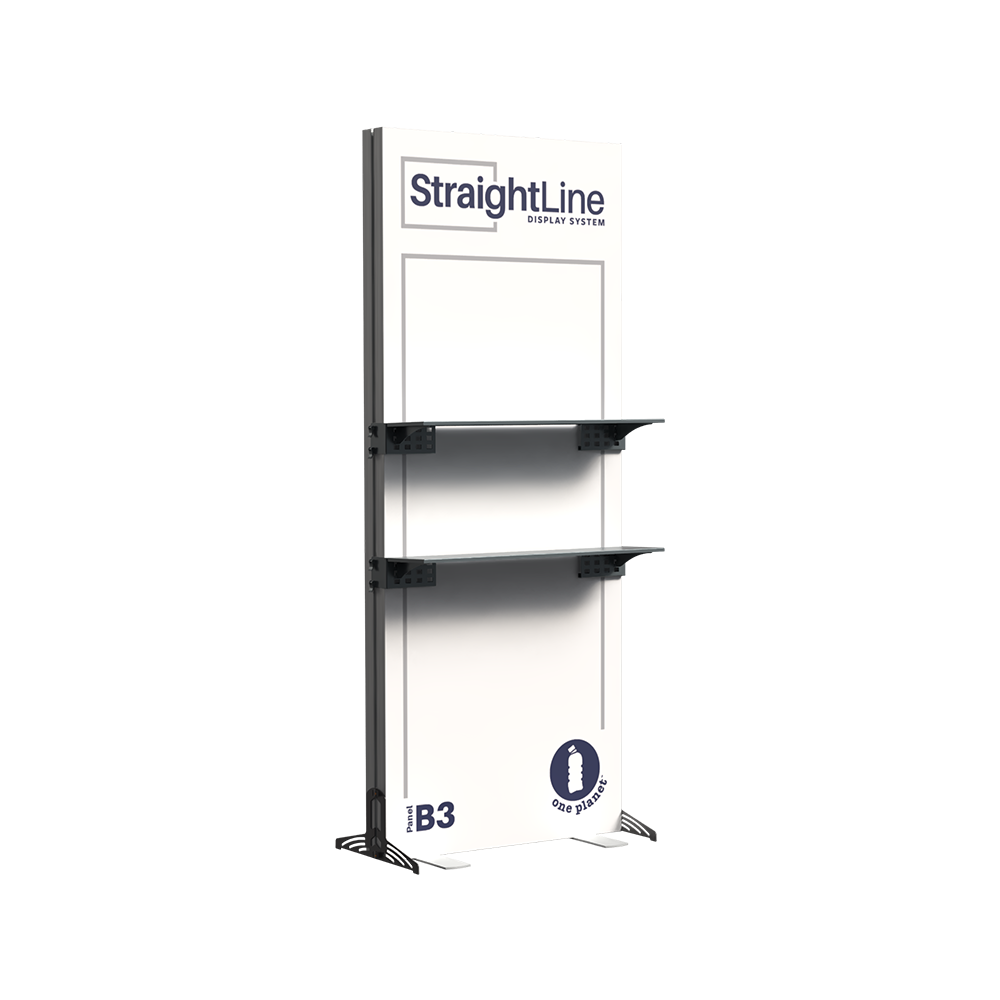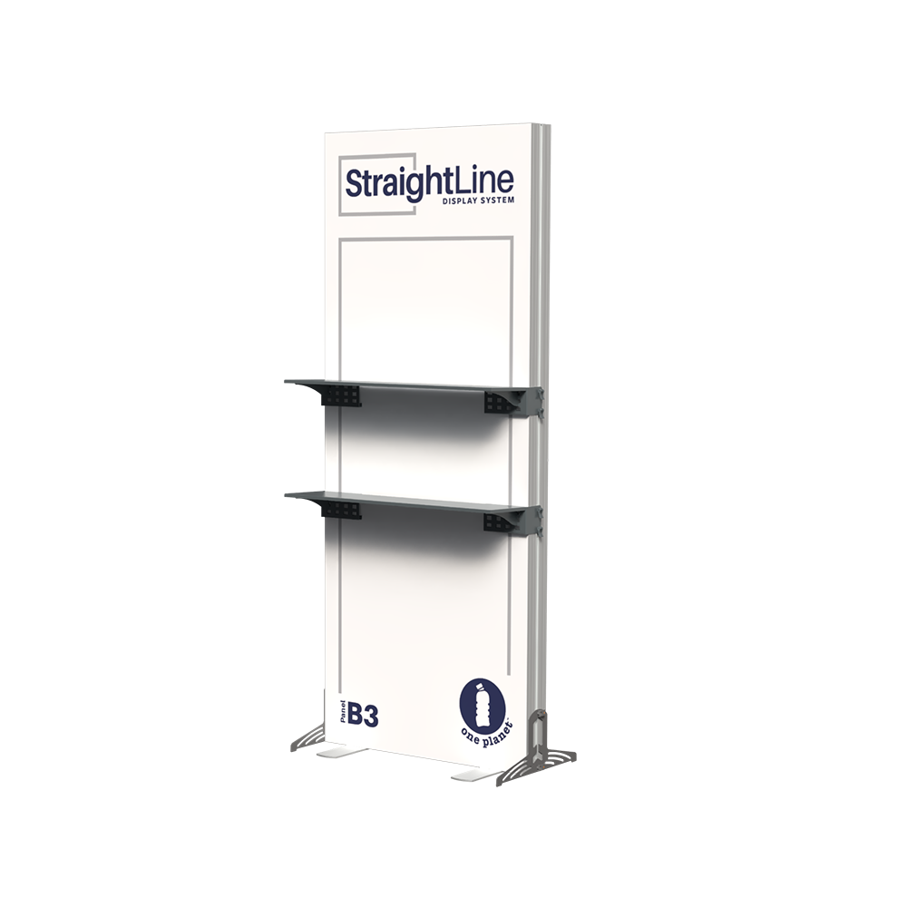StraightLine Kits provide an exceptional combination of modular displays, blending various shapes and styles to configure enhanced branding environments. These kits include aluminum frame, single-sided graphics, and connectors. Each panel is packed in a wheeled shipping case with custom foam inserts to ensure parts remain neat and organized. By adding two attachable shelves to the B3 banner, this kit showcases products and materials with style, creating an organized and engaging display for your audience. Integrating double-sided graphics or incorporating additional elements such as TV mounts, counters and shelving, you can achieve an elevated branded environment. Panels can also be paired with matching options from WaveLine and BrightLine display systems, contact our team for details.