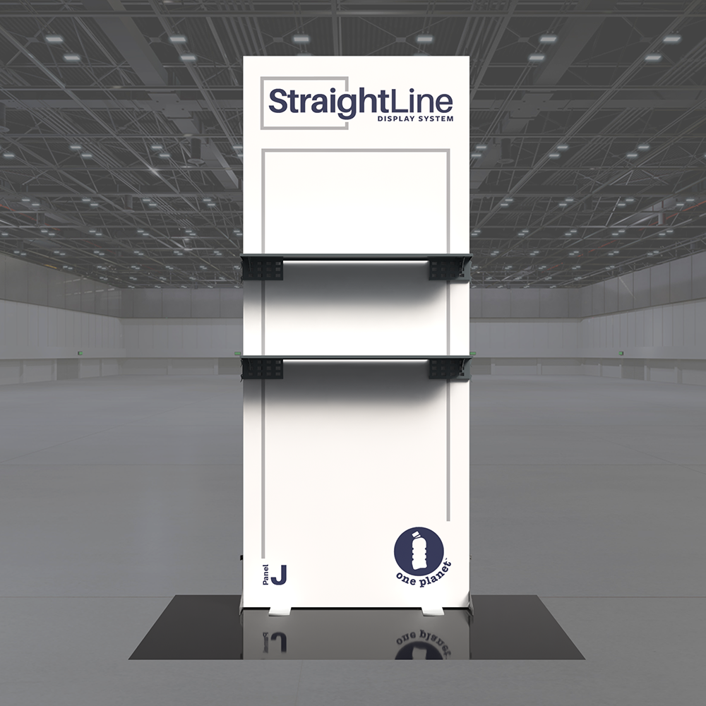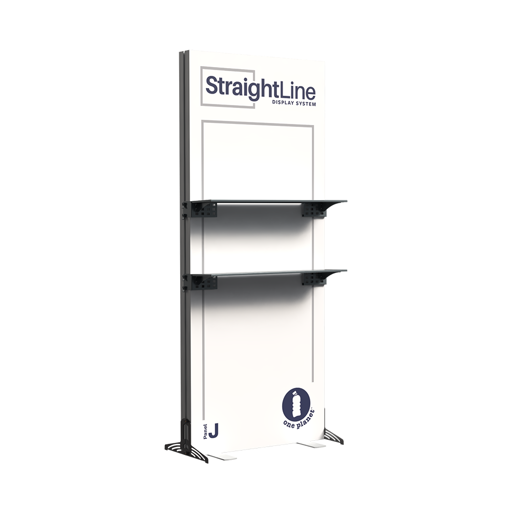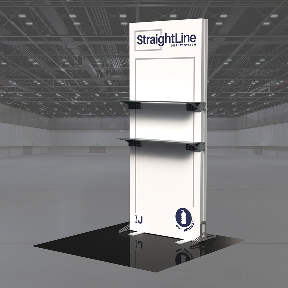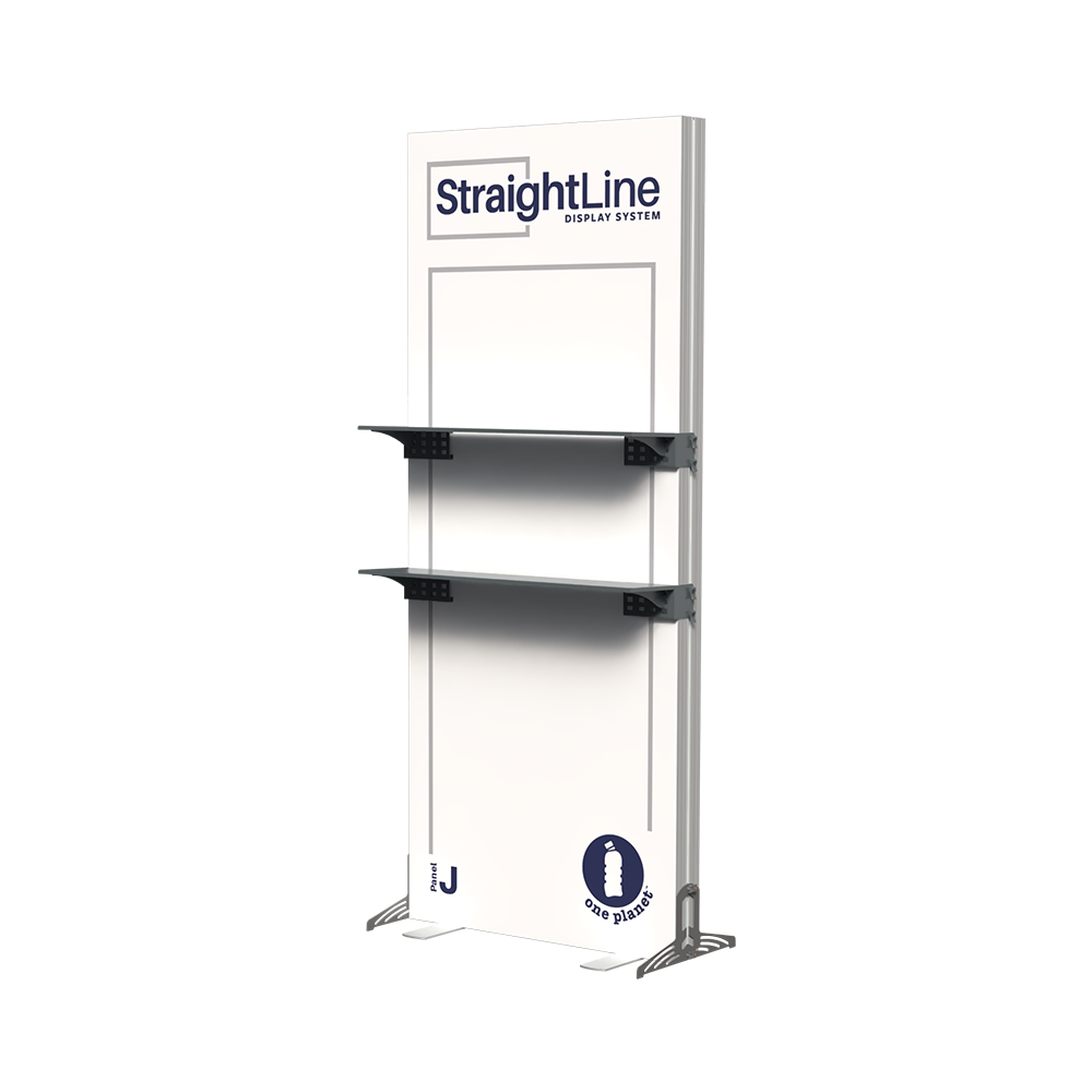 StraightLine Kits provide an exceptional combination of modular displays, blending various shapes and styles to configure enhanced branding environments. These kits include aluminum frame, single-sided graphics, and connectors. Each panel is packed in a wheeled shipping case with custom foam inserts to ensure parts remain neat and organized. This Panel J kit comes equipped with two attachable shelves, turning your display into a dynamic showcase for products, literature, or demos that keeps visitors engaged. Integrating double-sided graphics or incorporating additional elements such as TV mounts, counters and shelving, you can achieve an elevated branded environment. Panels can also be paired with matching options from WaveLine and BrightLine display systems, contact our team for details.