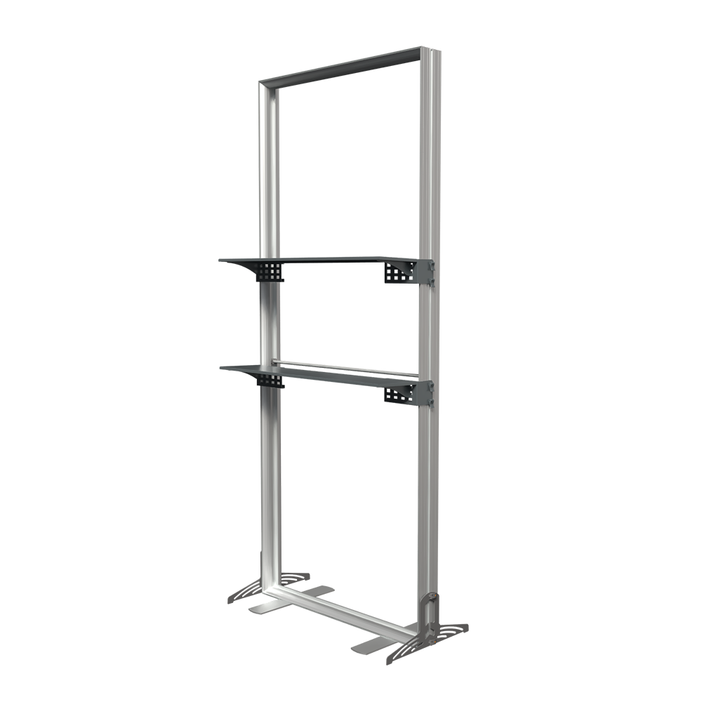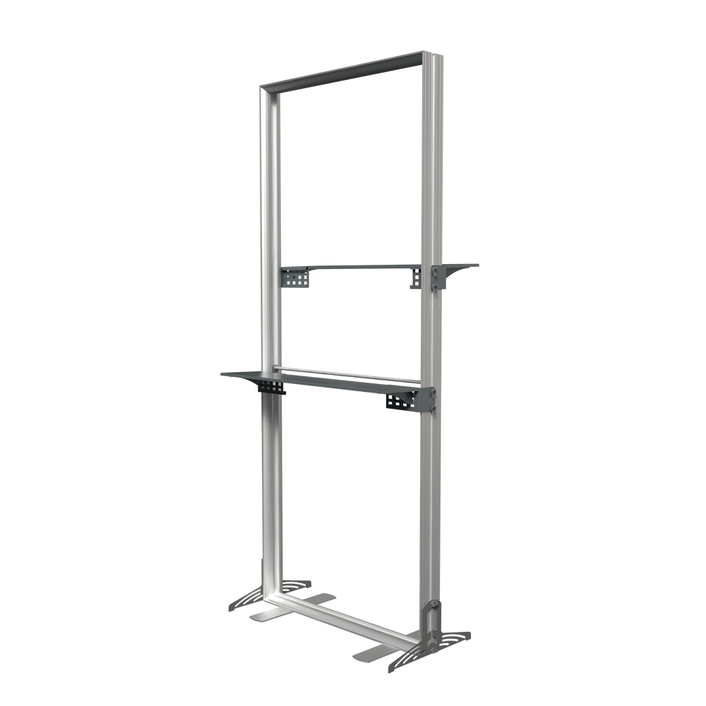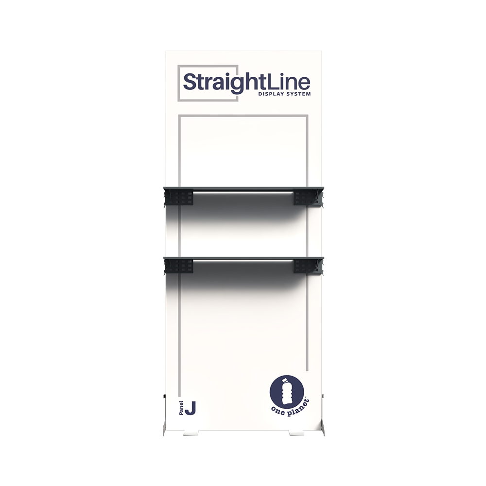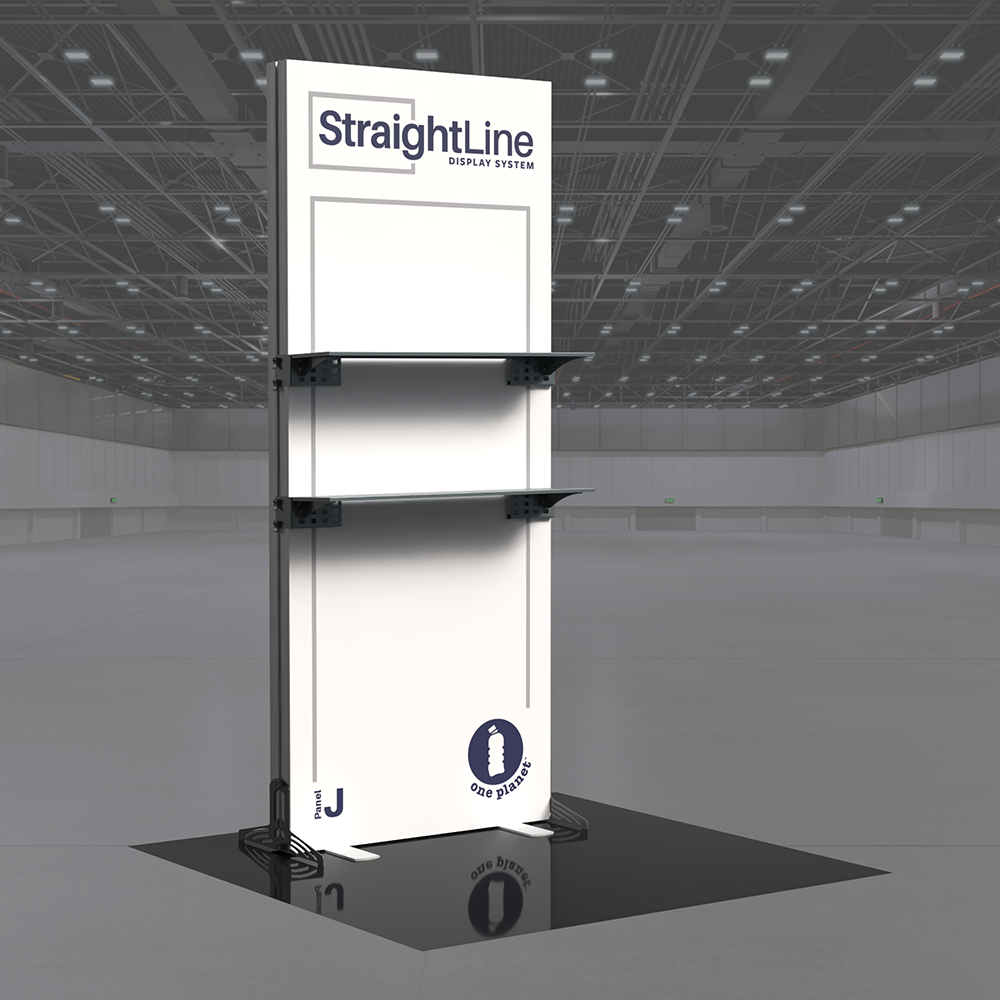 StraightLine Kits provide an exceptional combination of modular displays, blending various shapes and styles to configure enhanced branding environments. These kits include aluminum frame, single-sided graphics, and connectors. Each panel is packed in a wheeled shipping case with custom foam inserts to ensure parts remain neat and organized. This Panel J kit comes equipped with two attachable shelves, turning your display into a dynamic showcase for products, literature, or demos that keeps visitors engaged. Integrating double-sided graphics or incorporating additional elements such as TV mounts, counters and shelving, you can achieve an elevated branded environment. Panels can also be paired with matching options from WaveLine and BrightLine display systems, contact our team for details.
